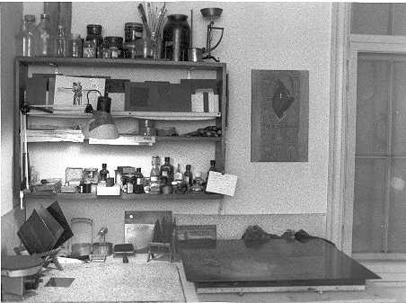 Kunstwerke entstehen. Das Atelier bietet in drei Räumen und einer
